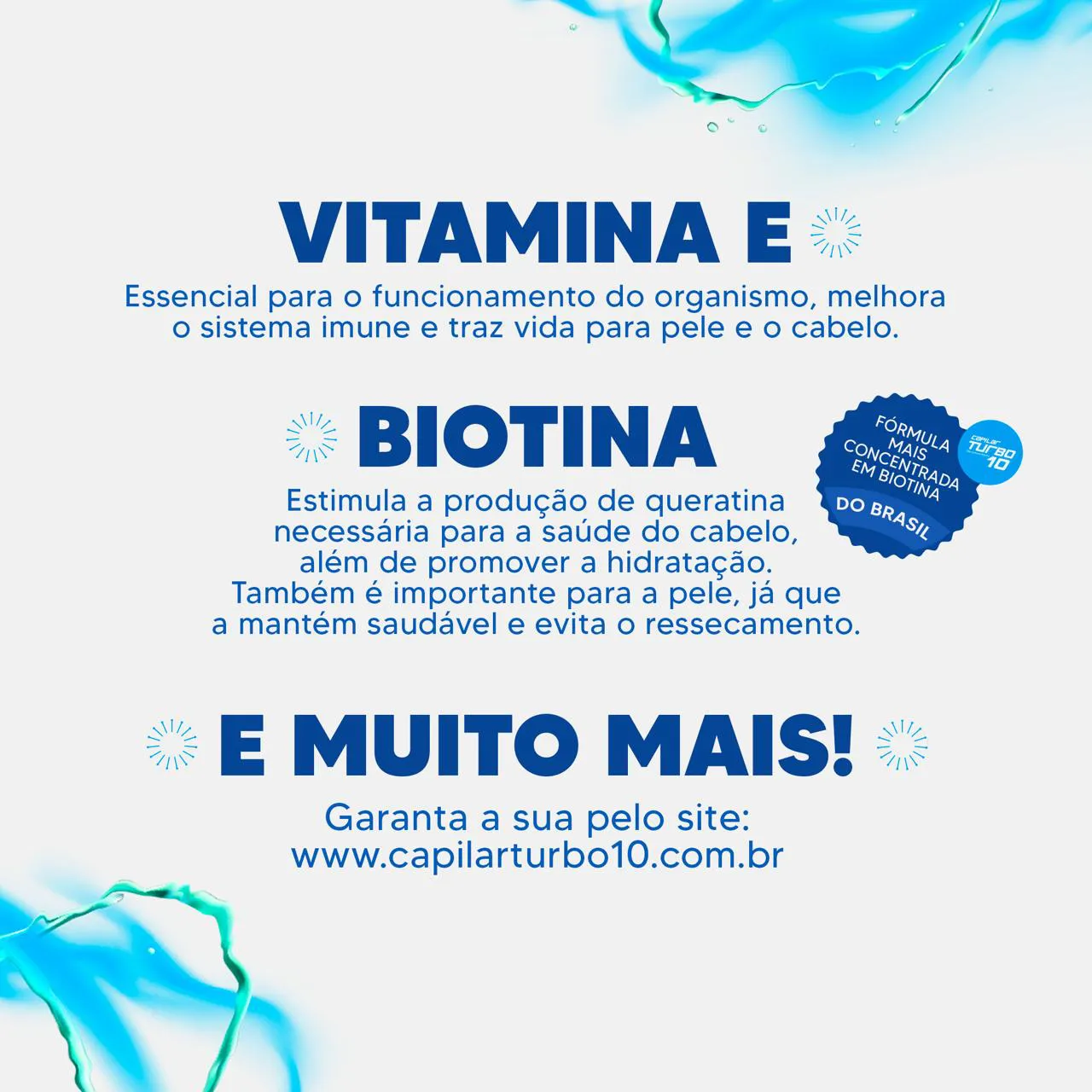 Se você sonha com cabelos mais fortes, saudáveis e com aquele brilho de salão, precisa conhecer a Vitamina Capilar Turbo 10. Com uma fórmula poderosa de múltiplas vitaminas, ela é sua aliada perfeita para acelerar o crescimento dos fios e garantir resultados surpreendentes em tempo recorde.